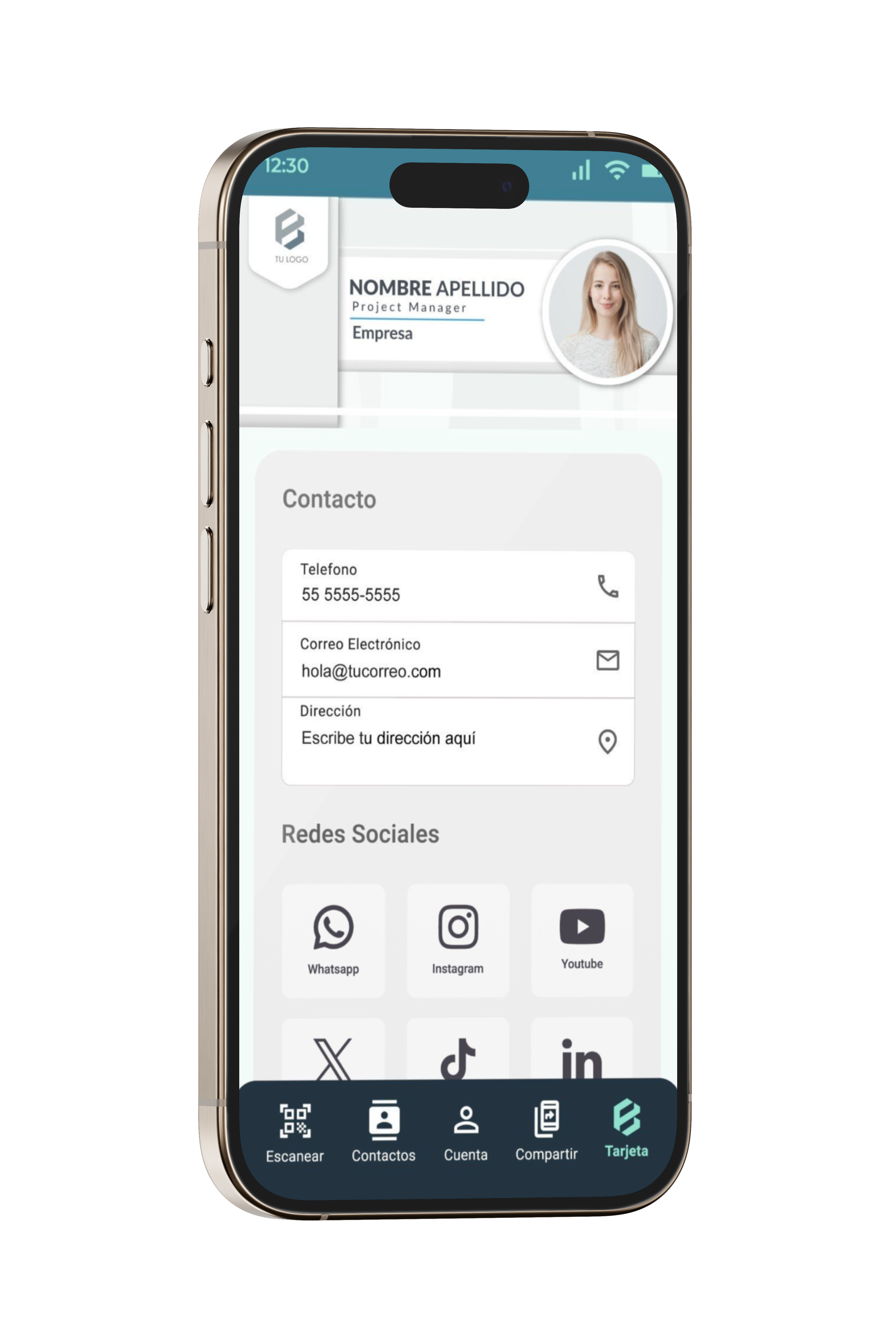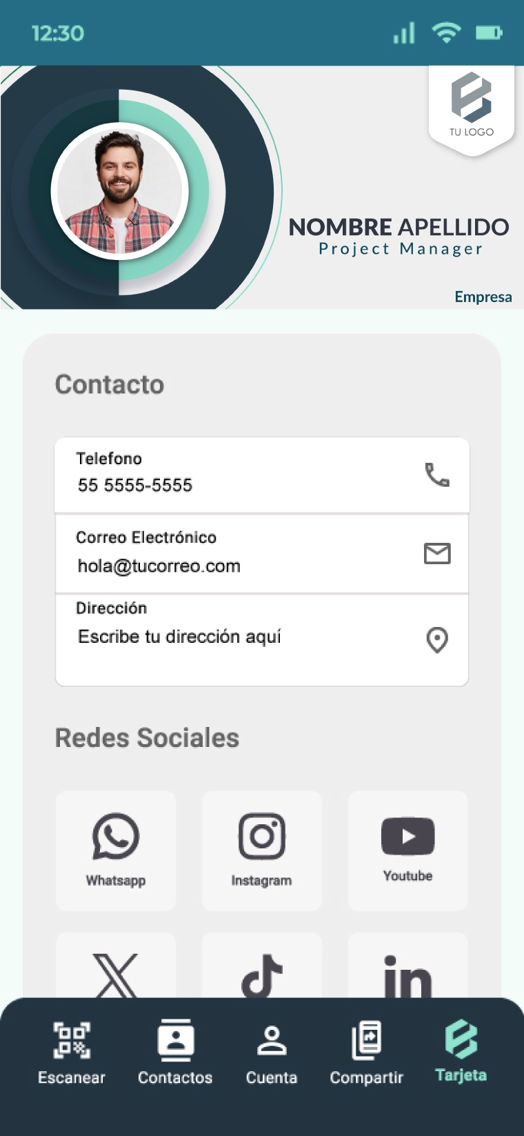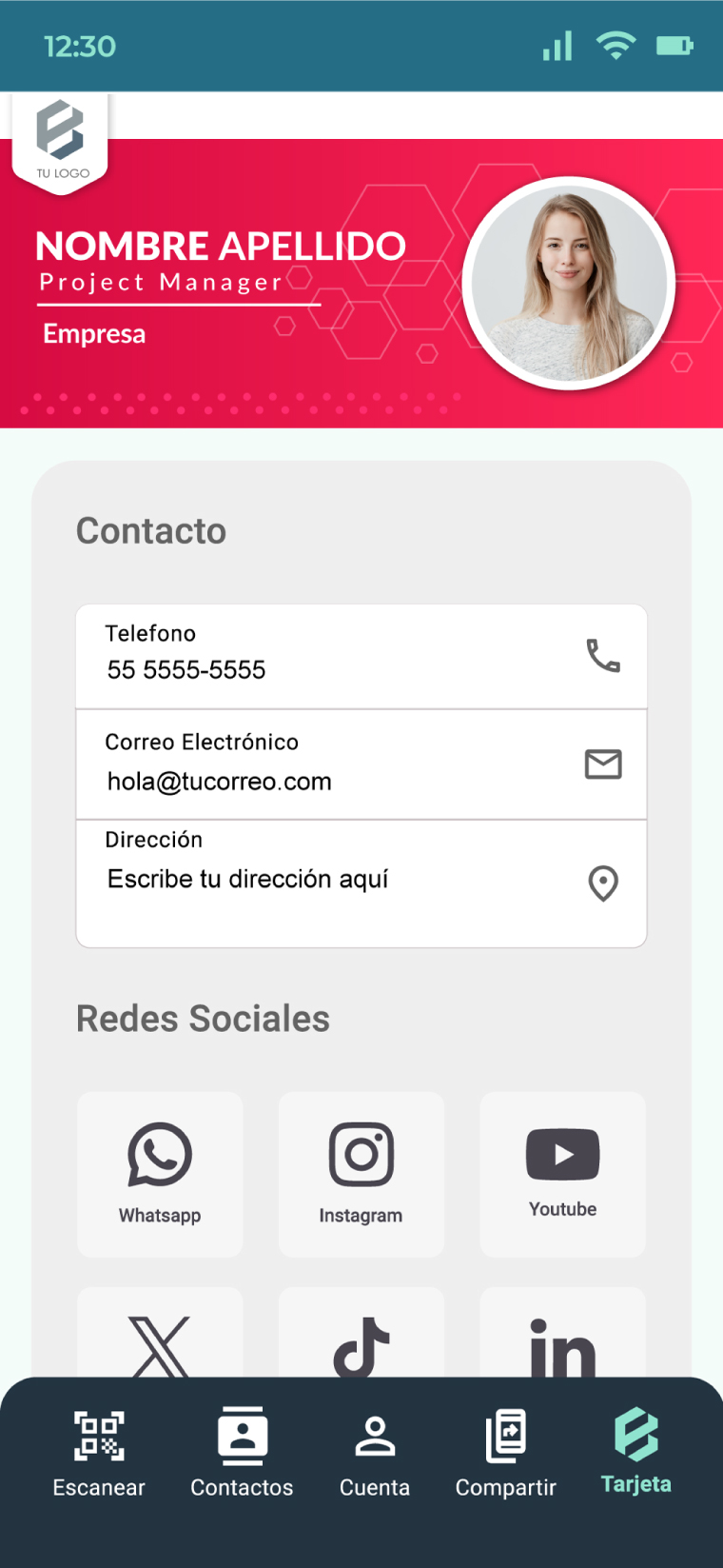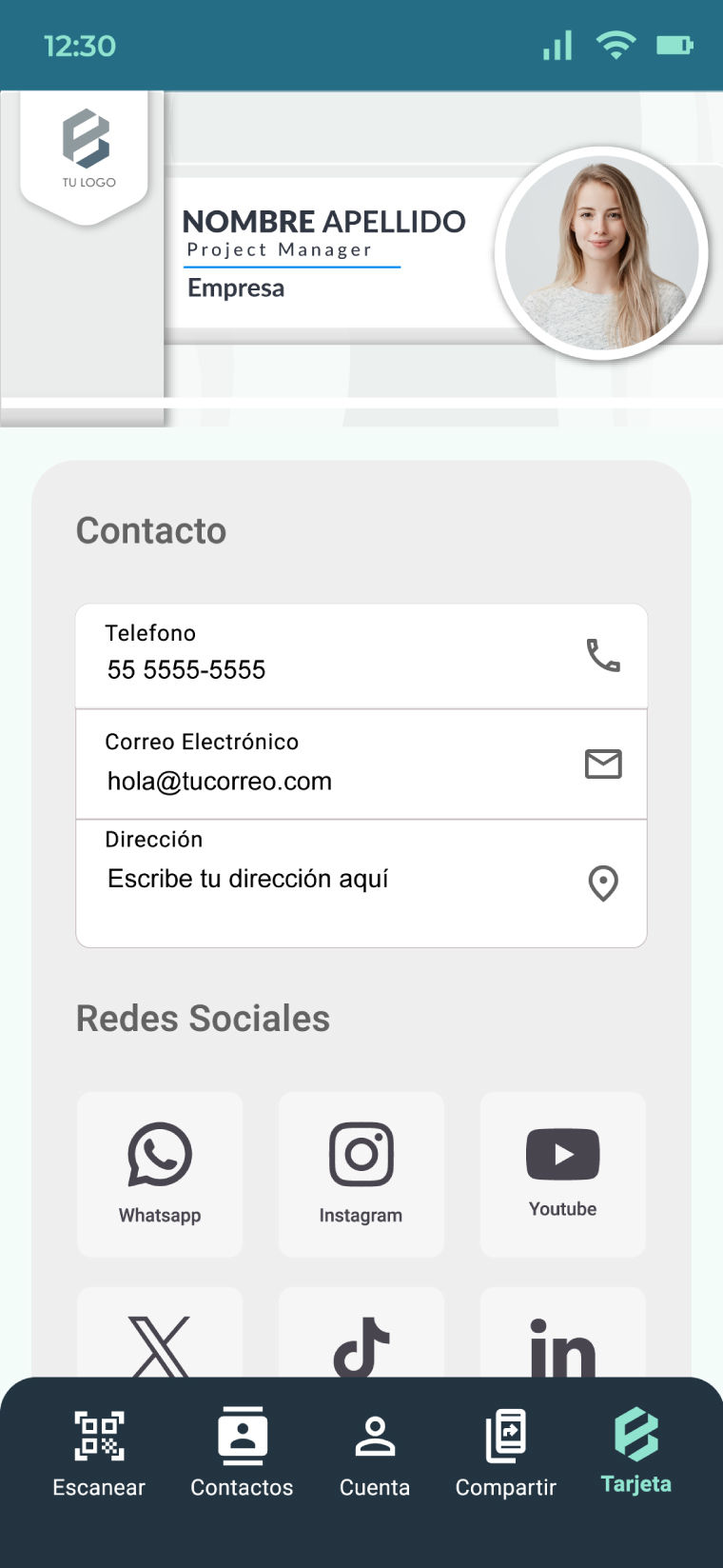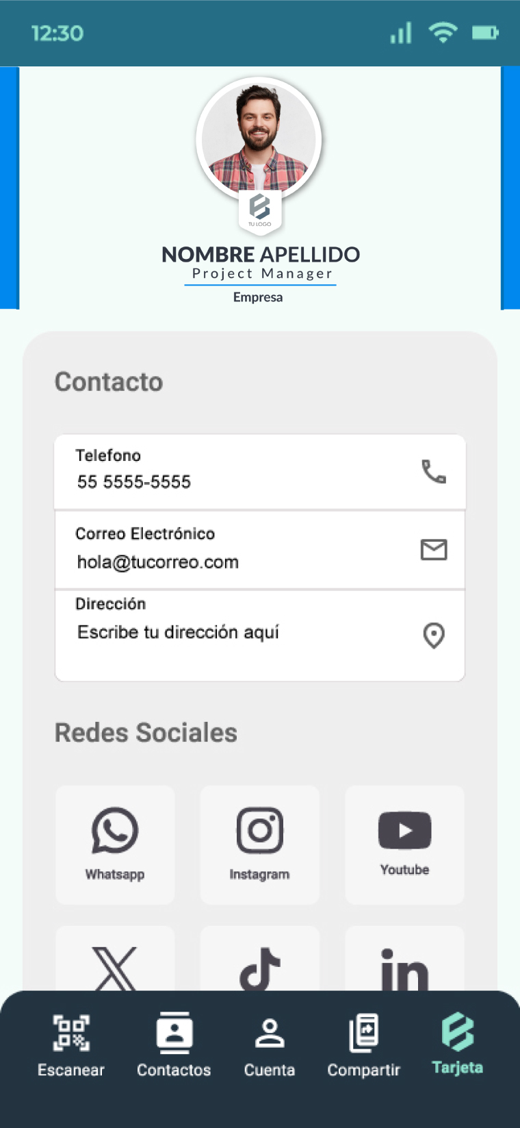 Crea una tarjeta digital que realmente te represente. Personaliza cada aspecto, desde la imagen hasta los enlaces a tus redes sociales, y dale a tu red de contactos un acceso directo a toda tu información profesional.